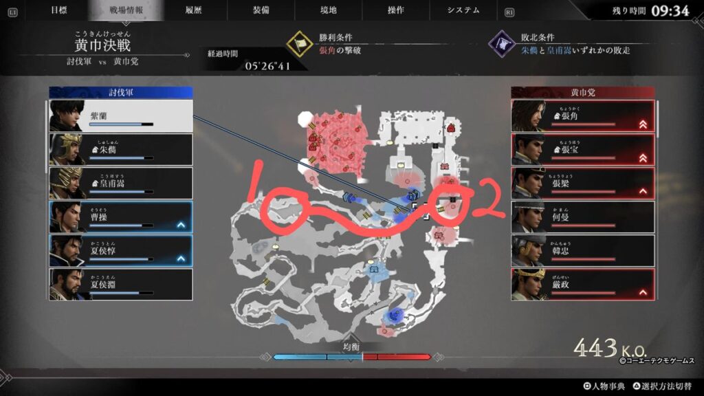 これでも、自分が大きなミスをしなければ大半の味方が生存しているために、後半の張宝大軍団は自分が積極的に戦わずとも、時間以内に瓦解させることが可能だ。